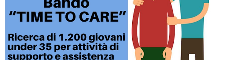Il Bando “Time to care” è rivolto ai giovani tra i diciotto e i trentacinque anni che vogliono impegnarsi, per un periodo di sei mesi, in attività di supporto e assistenza agli anziani, nell’ambito di azioni progettuali proposte dagli enti del Terzo settore sul territorio nazionale.